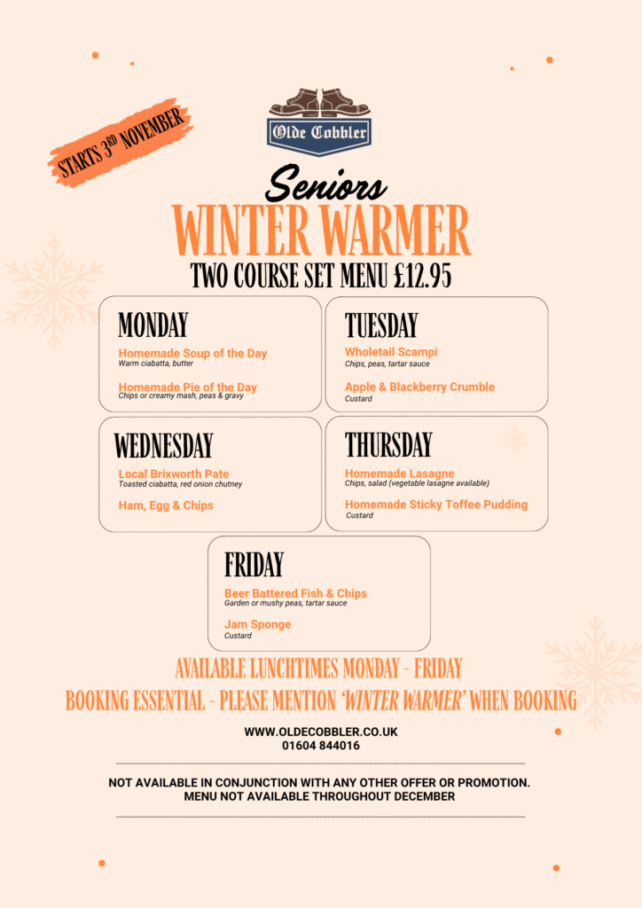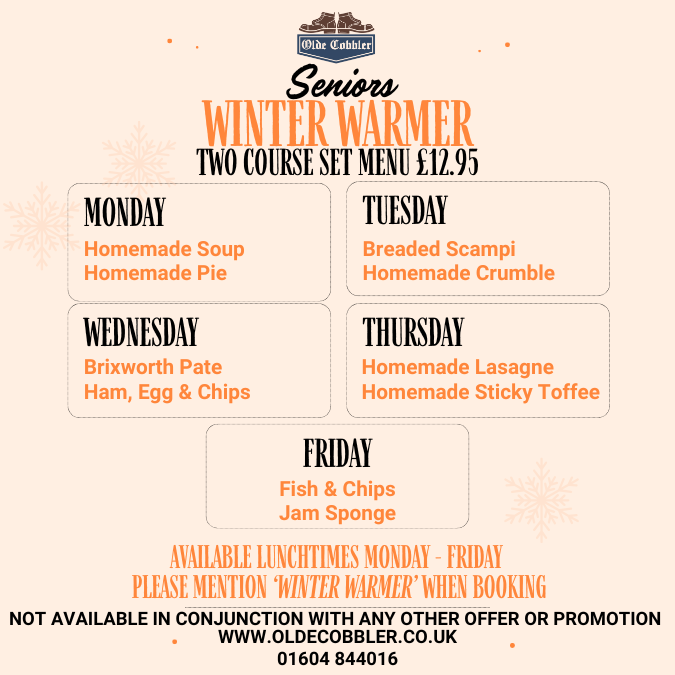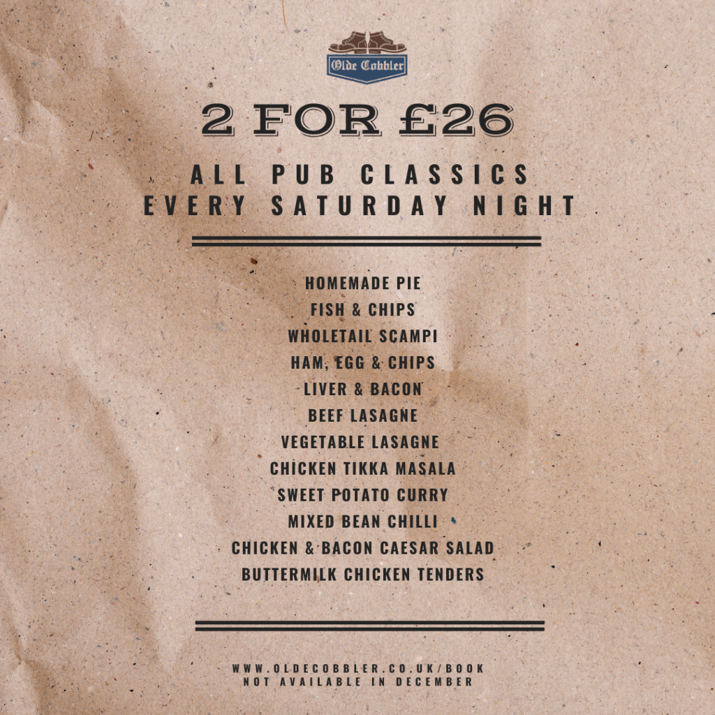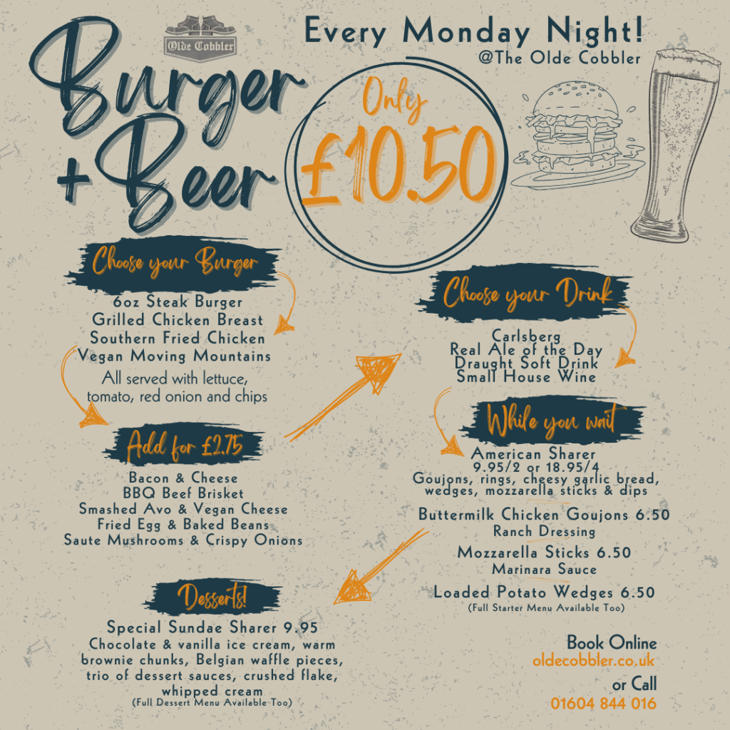 Tap the Menu at the top of this page to view what's on offer at The Olde Cobbler...